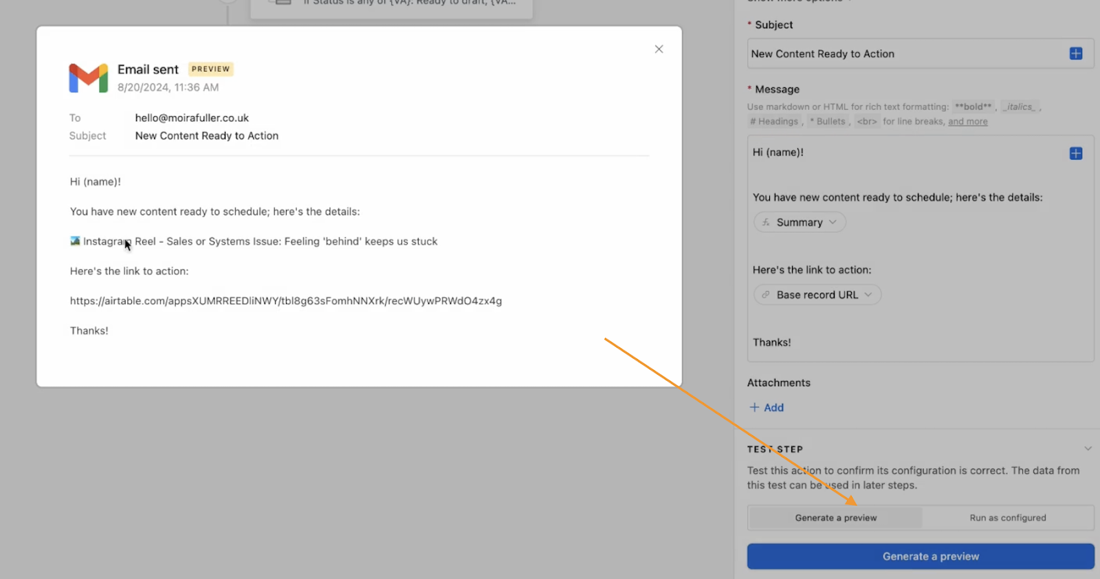 - Now click the ‘Generate a preview’ button, and you’ll see what your email will look like.